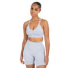 SMILODOX Damen Sport BH Katrin Scrunch - Shaped Fit Top - Blickdicht, V-Ausschnitt, Fester Halt, herausnehmbare Cups, elastisch - Schöner Rückenausschnitt - Ideal für Fitness, Yoga, Workout im Sale